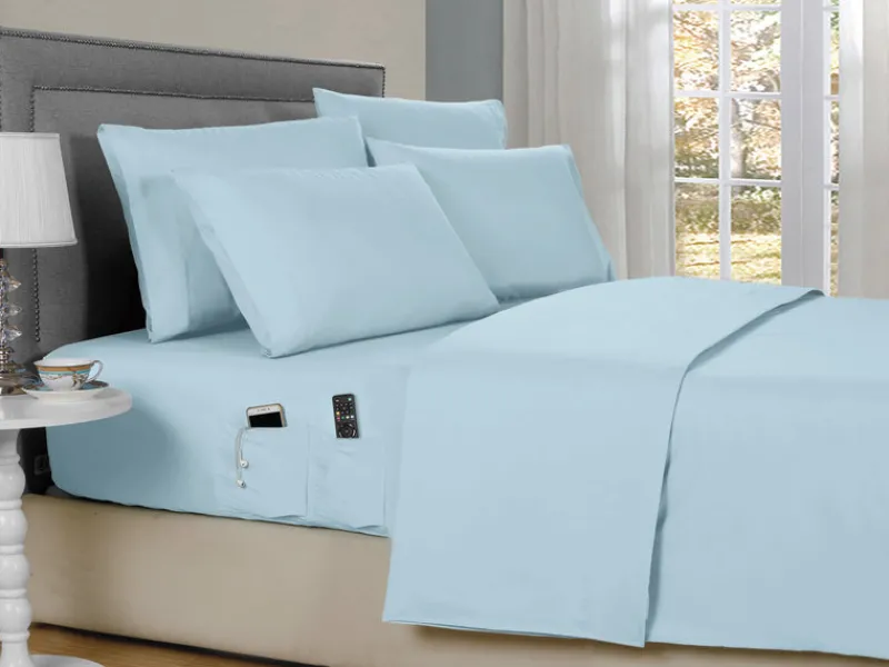 Who doesn’t love the idea of a convenient place to stash your notebook, pen, tissues, phone, flashlight, iPod? Smart Sheets sheet set gives a modern appeal by having side pockets for placing all your bedside items, which helps to remove side table clutter. You will never lose your eyeglasses or cell phone again if you own Smart Sheets! No more clutter on your nightstand! All the necessities can be put away in one place! These luxe Kathy Ireland sheets bring a little luxury to the place where you unwind and rejuvenate. Their silky softness will envelop you in a blissful sleep experience