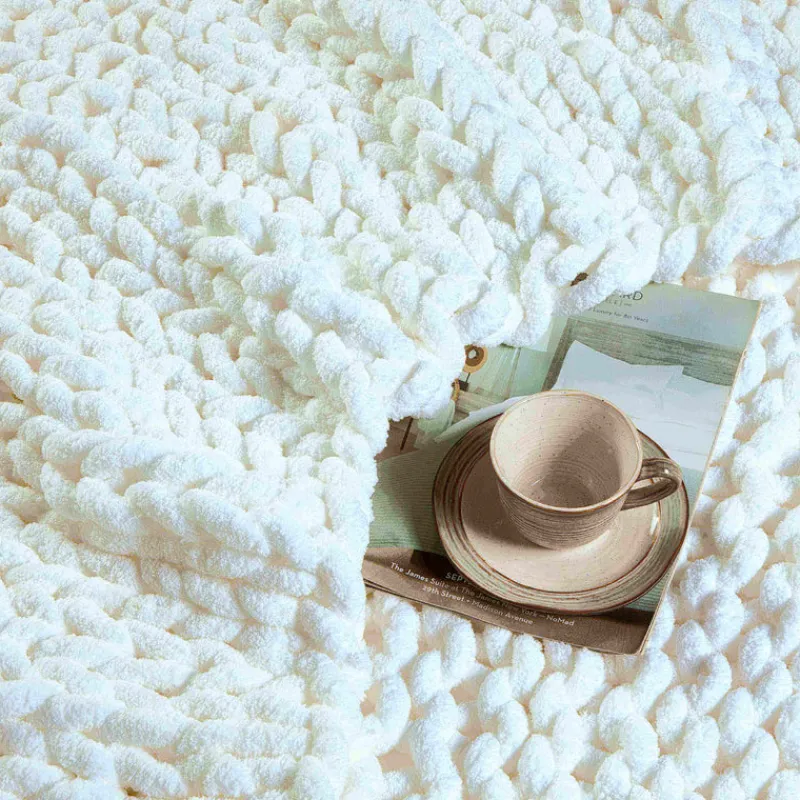 Light warmth for any member of the family. Chunky throw blanket knit may not be the warmest blanket for home, but it must be the perfect covering for an afternoon nap. The chunky knot blanket can quickly be spread out again in whatever arrangement one prefers after serving its purpose of providing warmth.