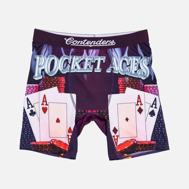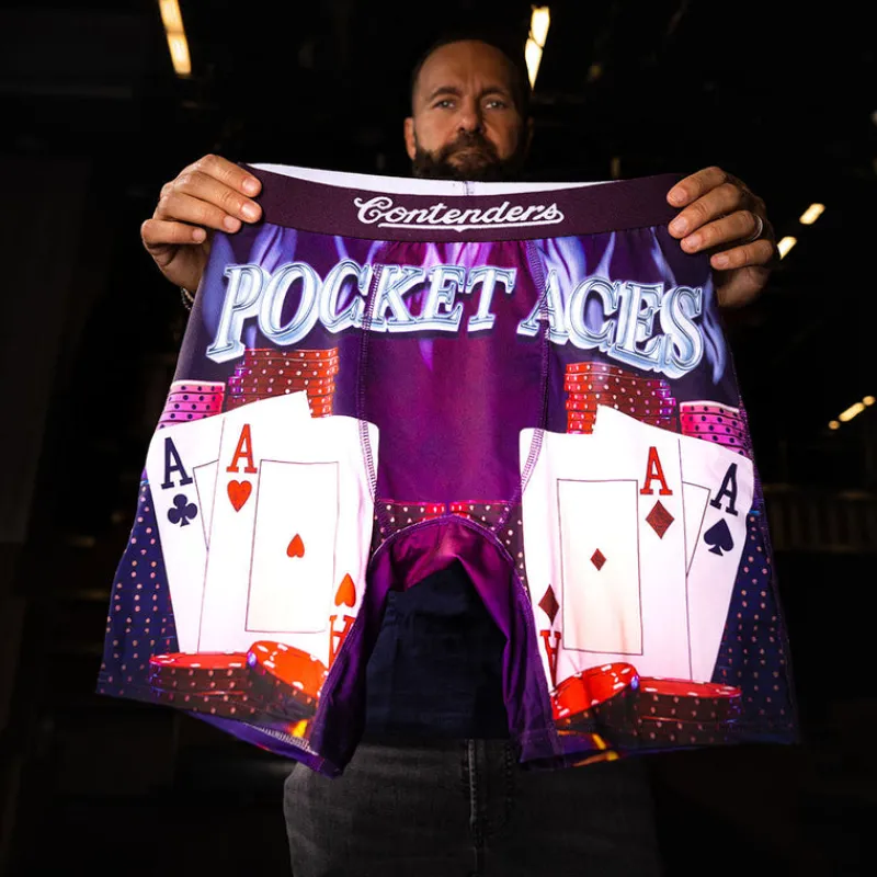 Raise. Re-raise. Pocket aces are the most powerful starting hand in Hold’em. Every pair of Contenders boxer briefs features Contenders’ exclusive RIDE CONTROLTM – no ride-ups, total comfort, every time. Designed with care in California.