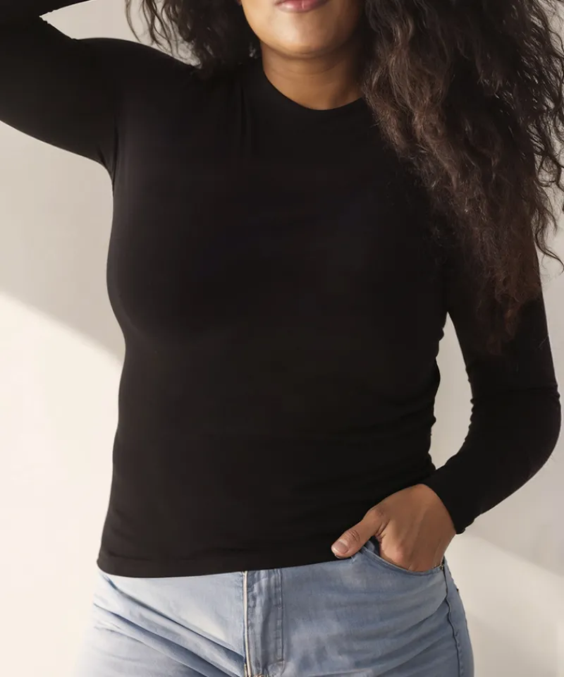 Feels like a hug, looks like a head-turner. Created with luxurious, sustainable modal lenzing fabric, this Little Black Tee feels softer than a cloud with built-in, wire-free 3D support and shaping that provides a flawless silhouette for elevated everyday style. Comfort? Check. Confidence? Double check. You’ll feel as good as you look—without wearing a bra.