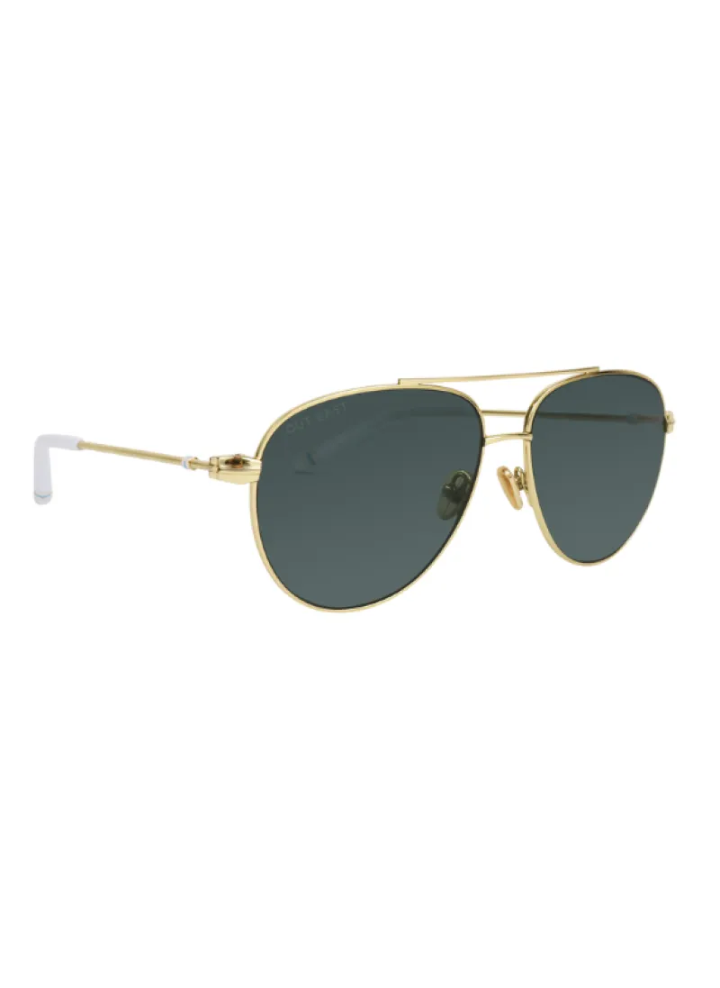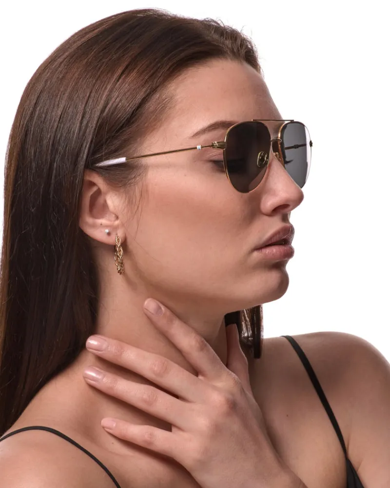 Our classic take on the iconic aviator sunglasses design will finish every ensemble on a retro note. The classic design has metal gold wire frames and blue/grey polarized lenses, and comes with a premium case and custom cloth that you can stow in your bag or on trips to the city.