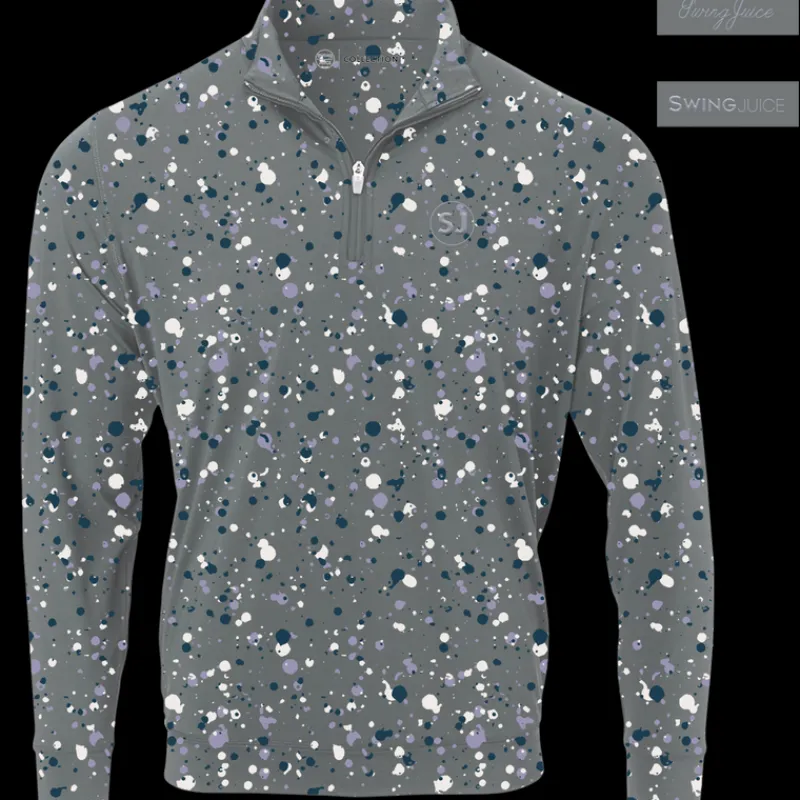 Add an artistic touch to your wardrobe with the Golf Splatter Men’s Quarter Zip. Featuring a splatter design inspired by modern art, this pullover brings a unique and creative flair to your look. Crafted from breathable EcoTec micro polyester, it ensures comfort and style.