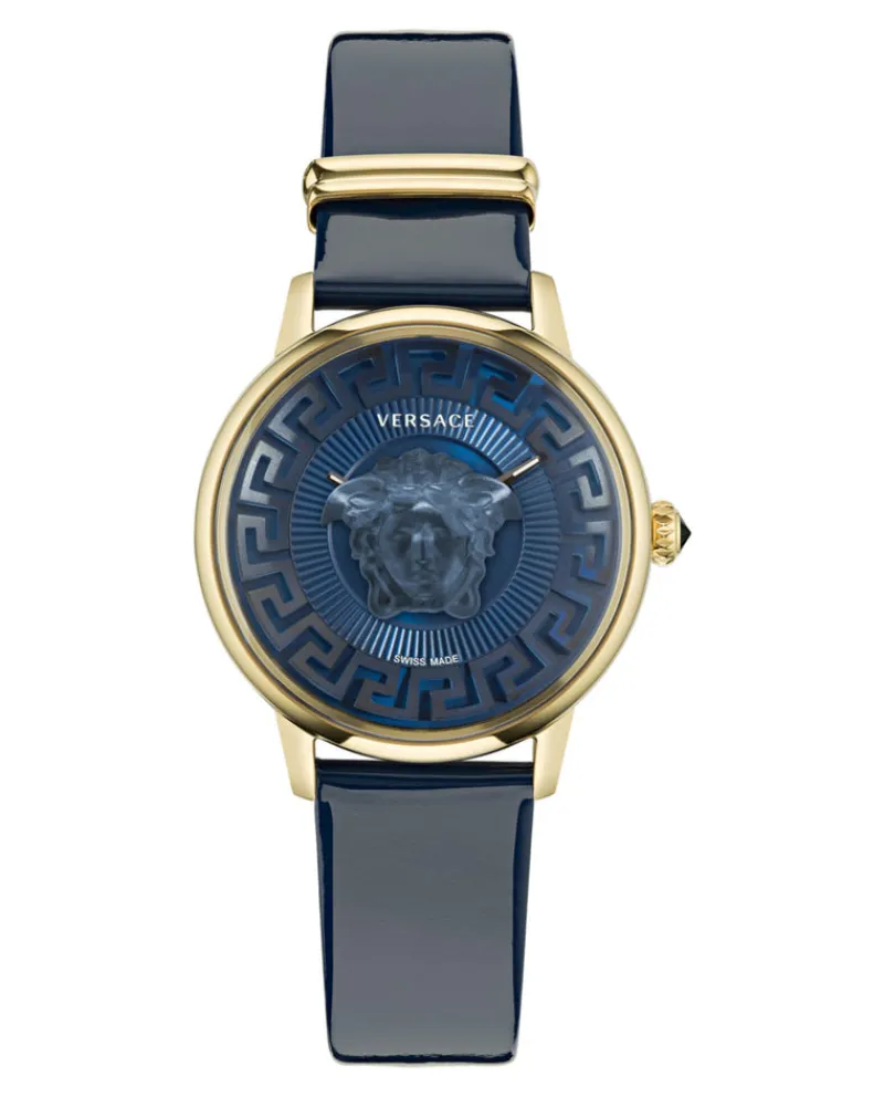 Fulfilled by our friends at Carro Luxury MaisonDETAILSSwiss Made 2 Hand Quartz Movement38mm IP Yellow Gold CaseBlue Calf…