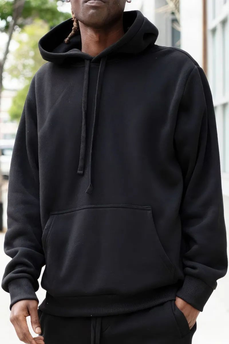 This hoodie is designed for those who appreciate timeless style and comfort. The classic Black color, kangaroo pocket, and ribbed details make it a versatile and essential piece for your casual wardrobe.