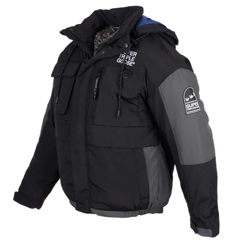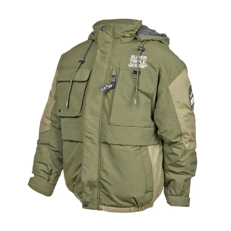 Stay warm and look good in the Super Triple Goose Men’s Parka Jacket. Its stylish design is wind and water resistant, ma…