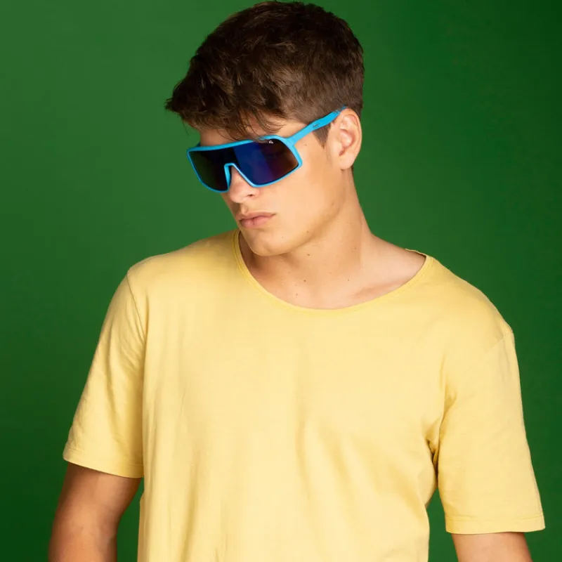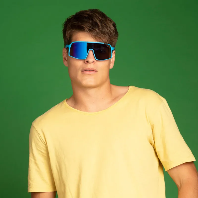 Stay protected and stylish with our Harbor sunglasses. Designed for all your outdoor activities, from cycling, skiing, to running on sunny days. These sunglasses feature a full matte blue frame and blue mirrored lenses for a stealthy look. Lightweight and made to withstand your toughest workouts, upgrade your gear and shield your eyes with our Harbor sunglasses today.
