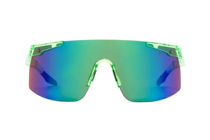 Featured in a clear green PC frame with green mirrored TAC polarized lenses.
