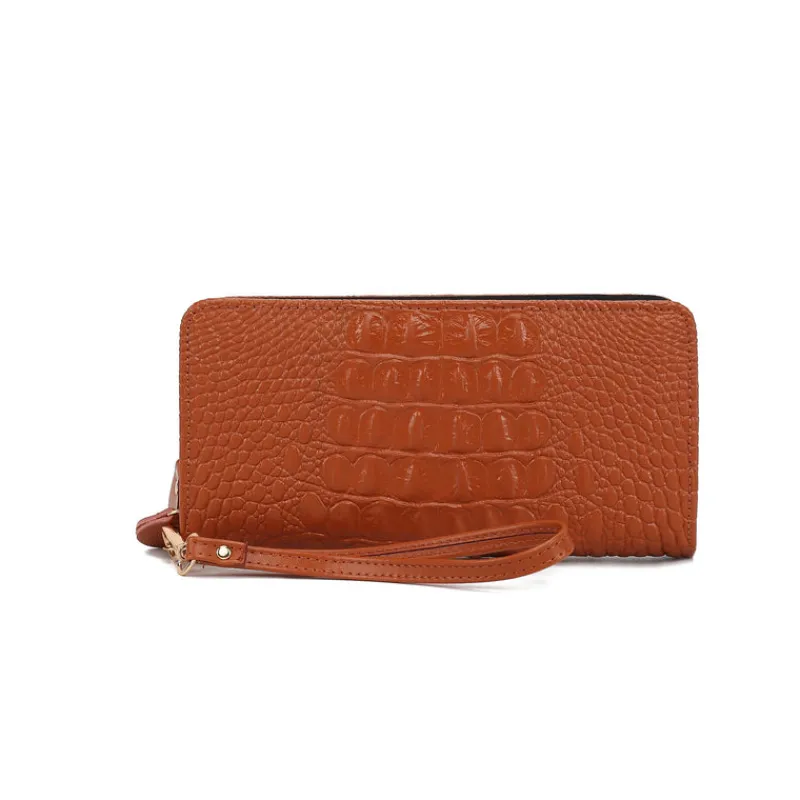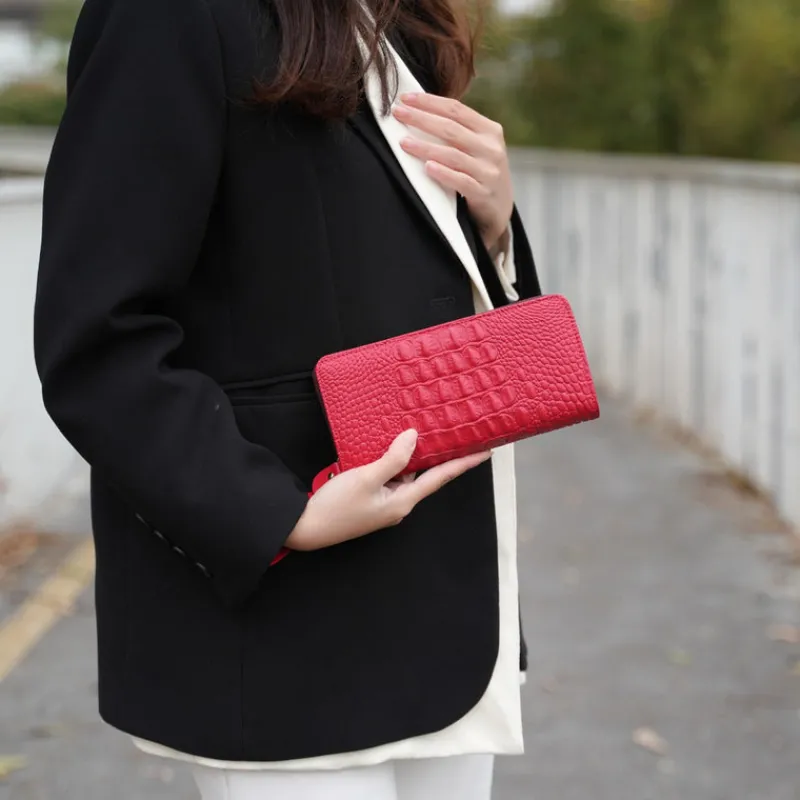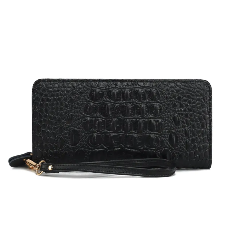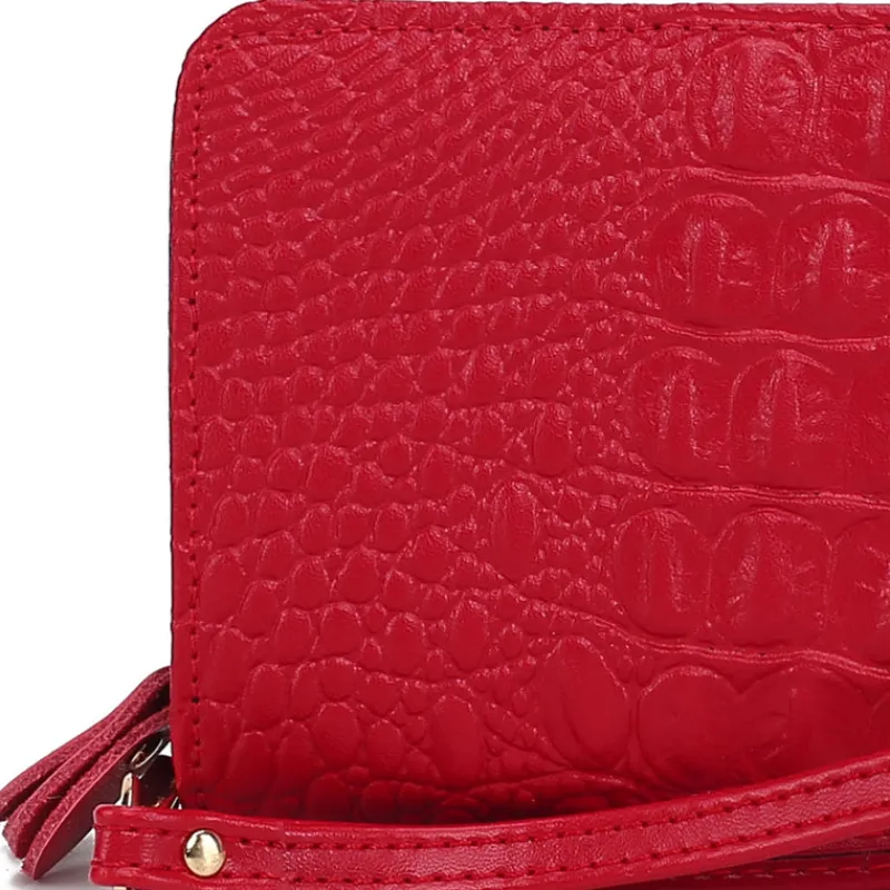 - Interior details: The first compartment features 8 card slots, a zipper coin compartment, and 2 slit pockets. The second compartment features 2 bill compartments.
