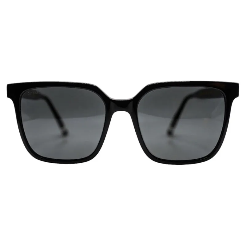 The Oceanview sunglasses, with oversized polarized CR39 lenses, are designed for sunny beach days but versatile enough for any climate or occasion. These unisex sunglasses feature trendy smoke-colored lenses and are handcrafted from black and hunter green Italian acetate, capturing the carefree spirit we all love.