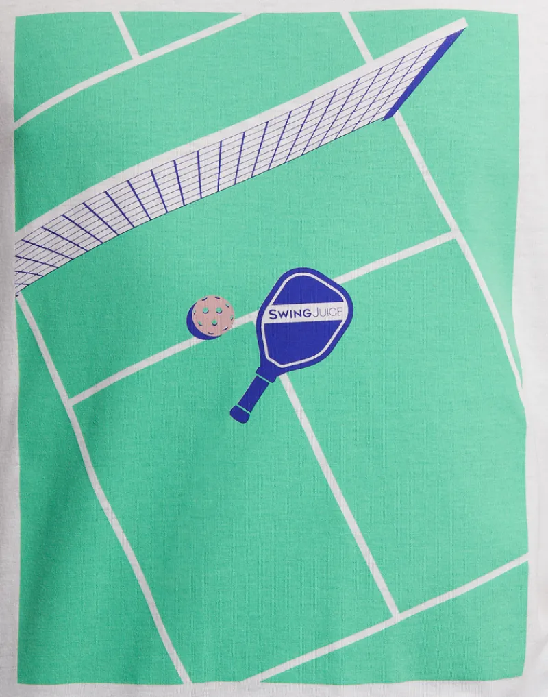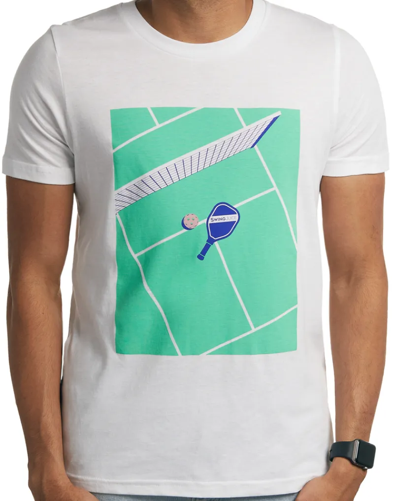 Show your love for the game with the Pickleball The Court Unisex T-Shirt from SwingJuice. Featuring a pickleball court graphic with a racket and ball on the front, this tee is perfect for pickleball enthusiasts. Crafted from a soft blend of cotton and polyester, it offers all-day comfort and style both on and off the court.