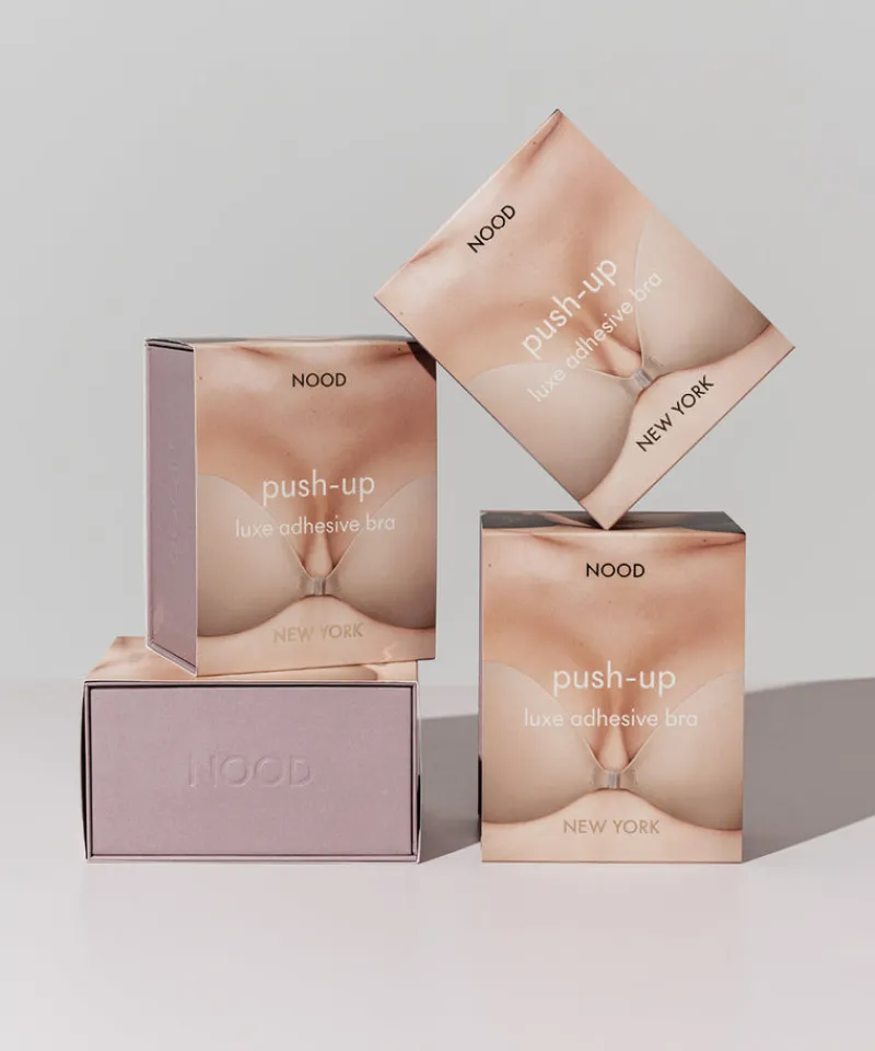 Nood’s padded Push Up adhesive bra gives extra volume and cleavage. Made from buttery soft seamless recycled fabric and medical grade adhesive, wear over 50 times with proper care. Best for small to medium busts and can be combined with our Shape Tape to make it guaranteed sweat-proof.
