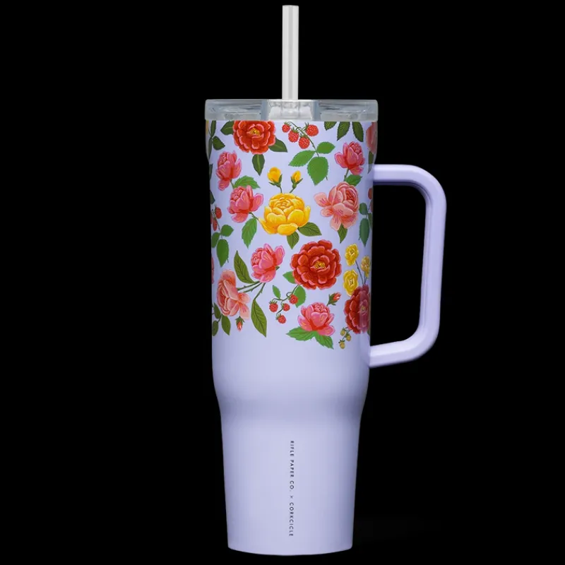 Let the joyrides commence. Cruiser, our largest straw cup to date, keeps 40 oz of your favorite beverage cold for up to 20 hours, allowing you to enjoy everyday adventures without giving your hydration needs a second thought. It features an exclusive dual-function sip + straw spill-proof lid, a comfy soft-grip handle, and a stay-put silicone bottom to keep it upright no matter your destination or how many stops you take on the way. Now available in three of Rifle Paper Co.’s iconic floral patterns.