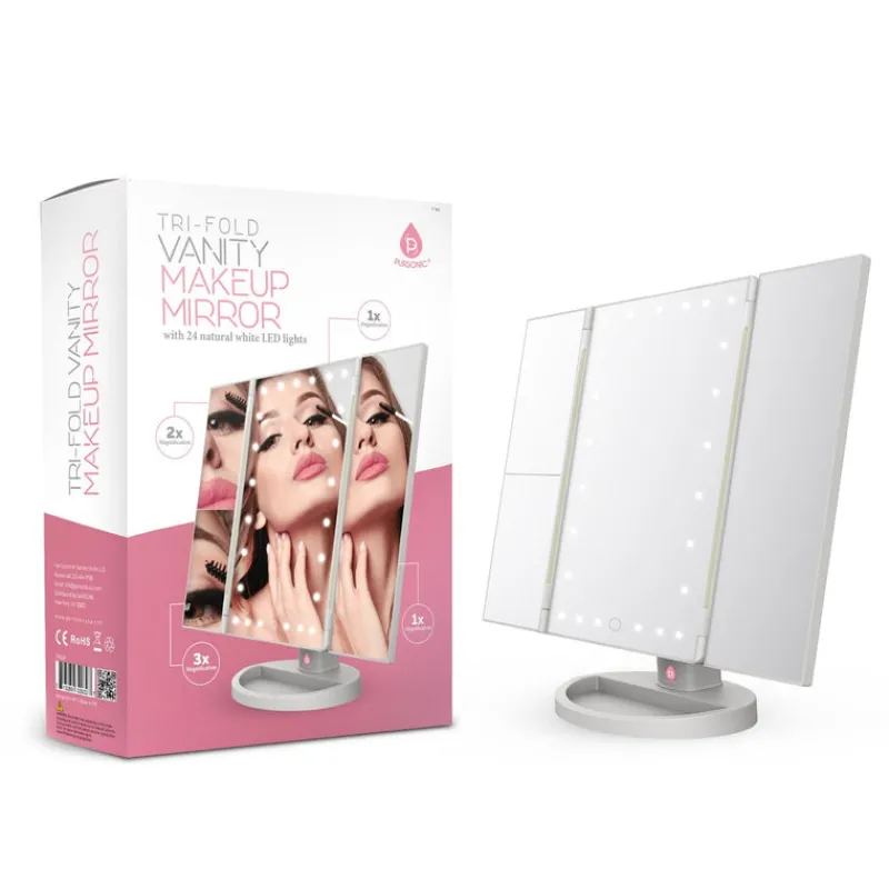 - Wide Viewing Area 3-panel ultra-reflective mirrors provide multiple viewing angles, so you always look (and feel) your very best! 180° rotation, fully adjustable to any desired position