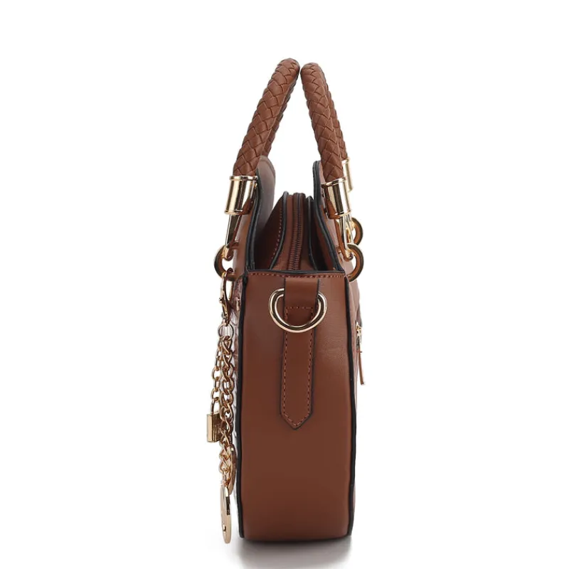 – Pockets: Inside features 4 Credit card slots and a slip pocket. The exterior features one slip pocket with magnetic snap closure and one back zip pocket