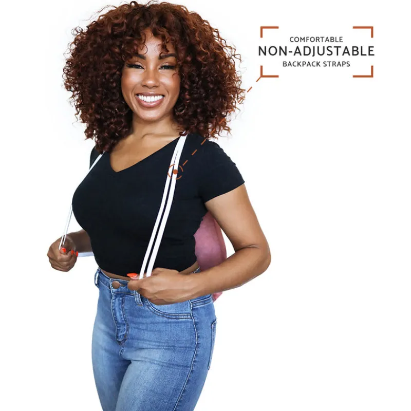 - Standard double-drawcord backpack straps (non-adjustable)