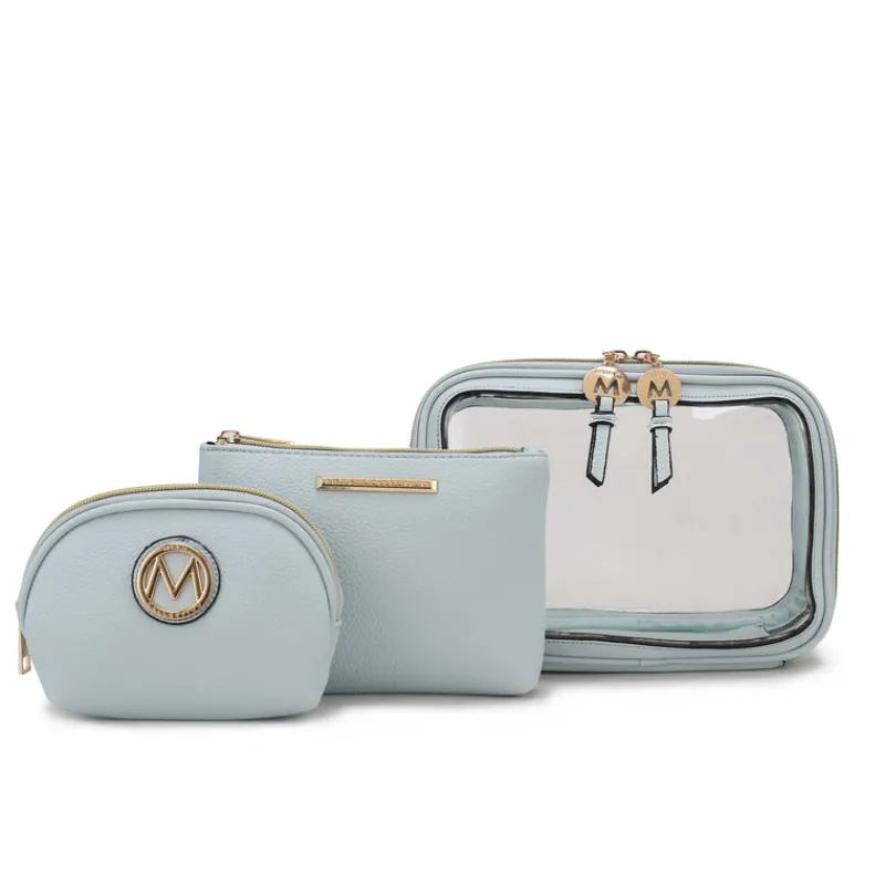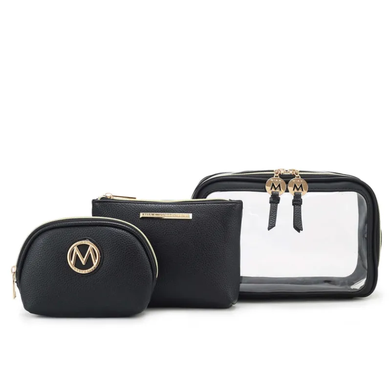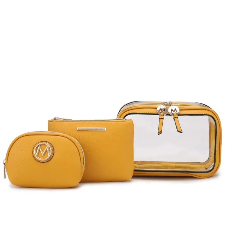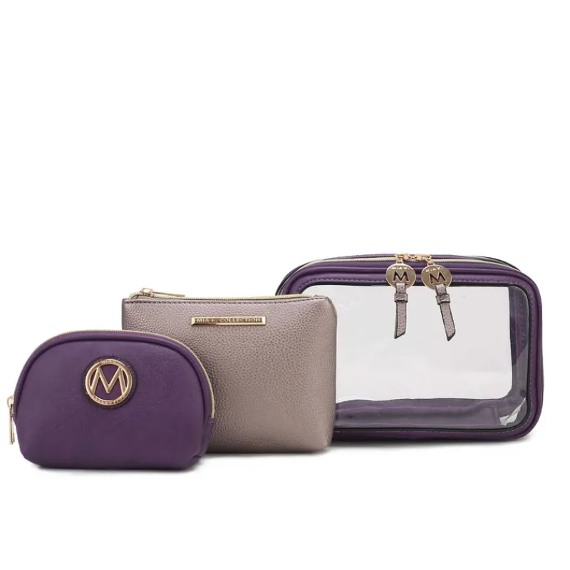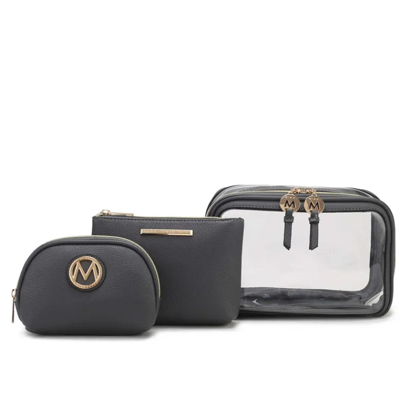 • High-Quality Vegan Leather.• MEASUREMENTS: • Large Clear Cosmetic Pouch:10in L x 6in H x 4 in D• Medium Pouch:…