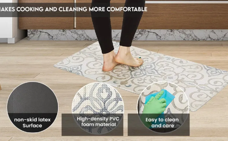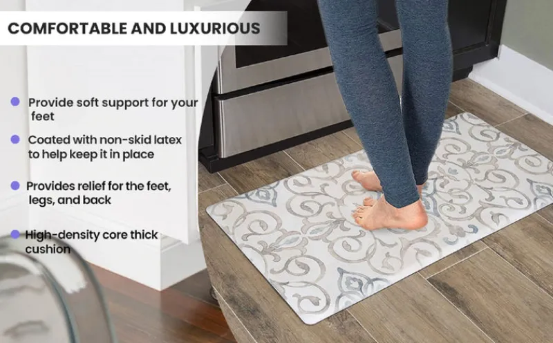 - Antifatigue kitchen mat cushions your feet during prolonged periods of standing