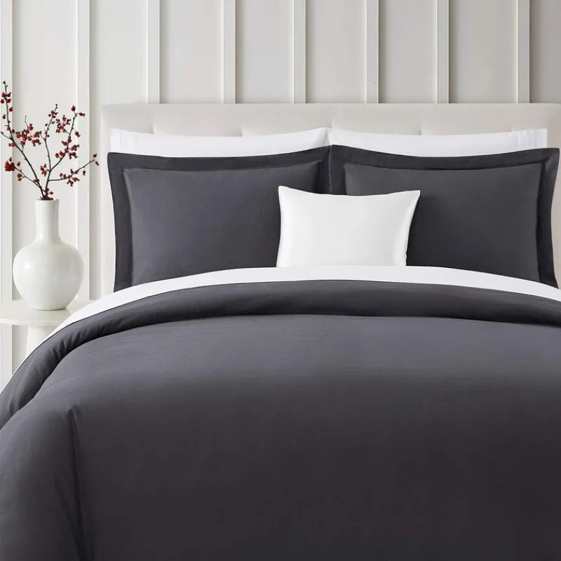 Featuring beautiful plaids and contemporary solids, these luxurious and heavyweight cotton flannel duvet sets by Bibb Home are constructed of fine fibers to retain softness and maintain appearance after repeated washings. Brushed on both sides for ultra-soft hand and sanforized to minimize shrinkage, these duvets are designed to accommodate most pillowtop and extra deep mattresses and include internal corner ties that can secure your comforter through its corner loops and prevent shifting. This durable oversized duvet set is machine-washable for easy care.