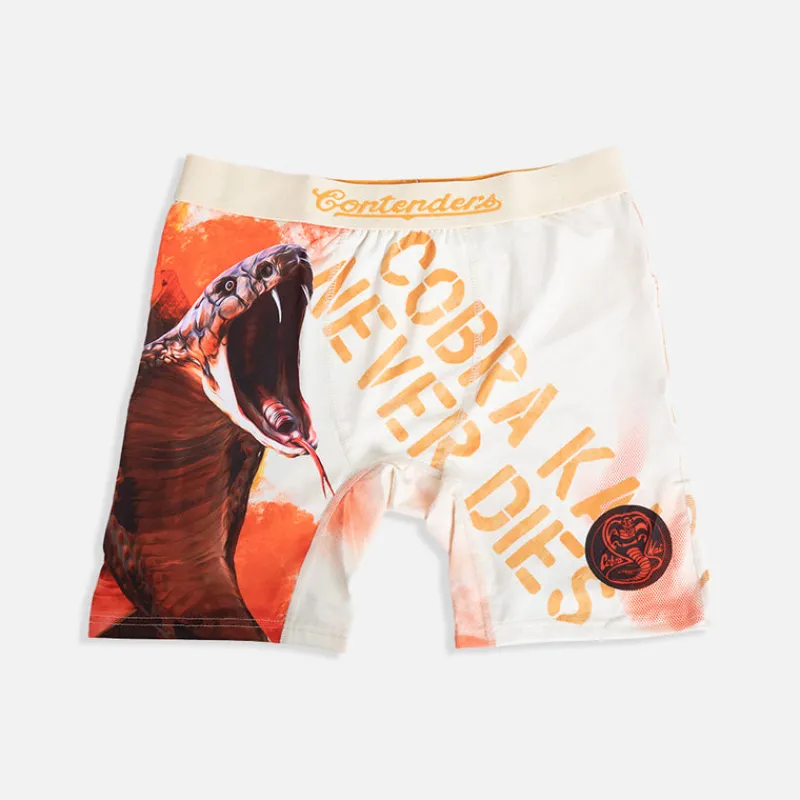 You know what never dies – COBRA KAI never dies. Enjoy this unique take on the Cobra Kai dojo and its cobra symbol! Every pair of Contenders boxer briefs features Contenders’ exclusive RIDE CONTROLTM – no ride-ups, total comfort, every time. Designed with care in California.