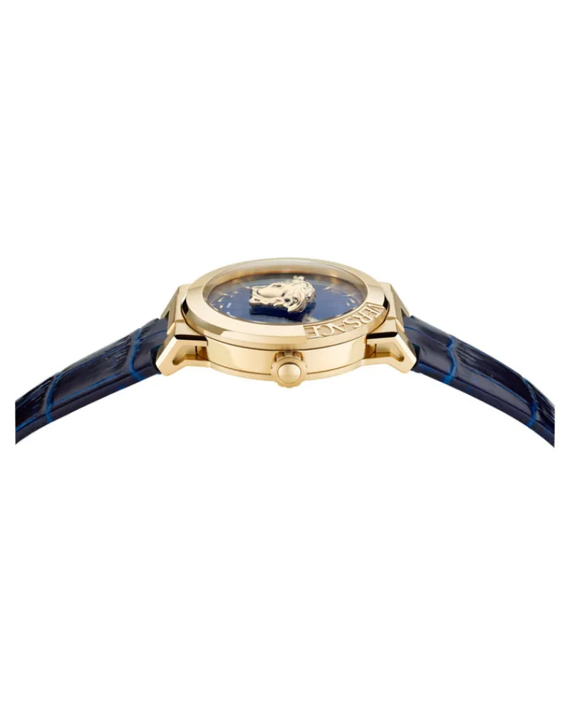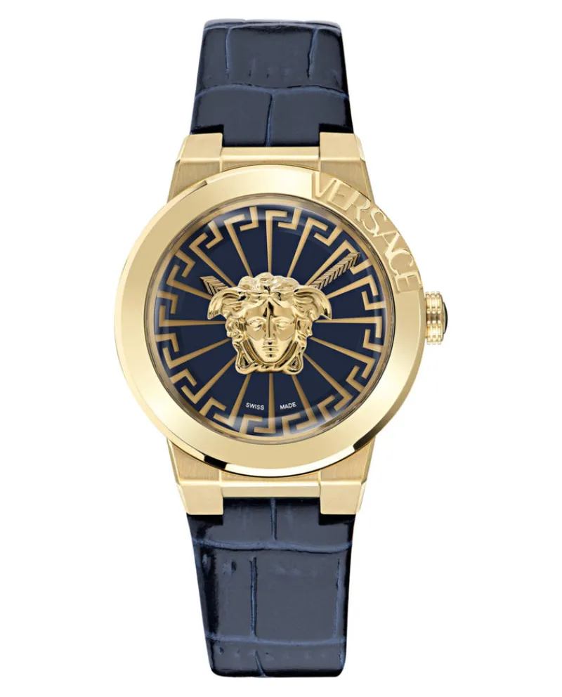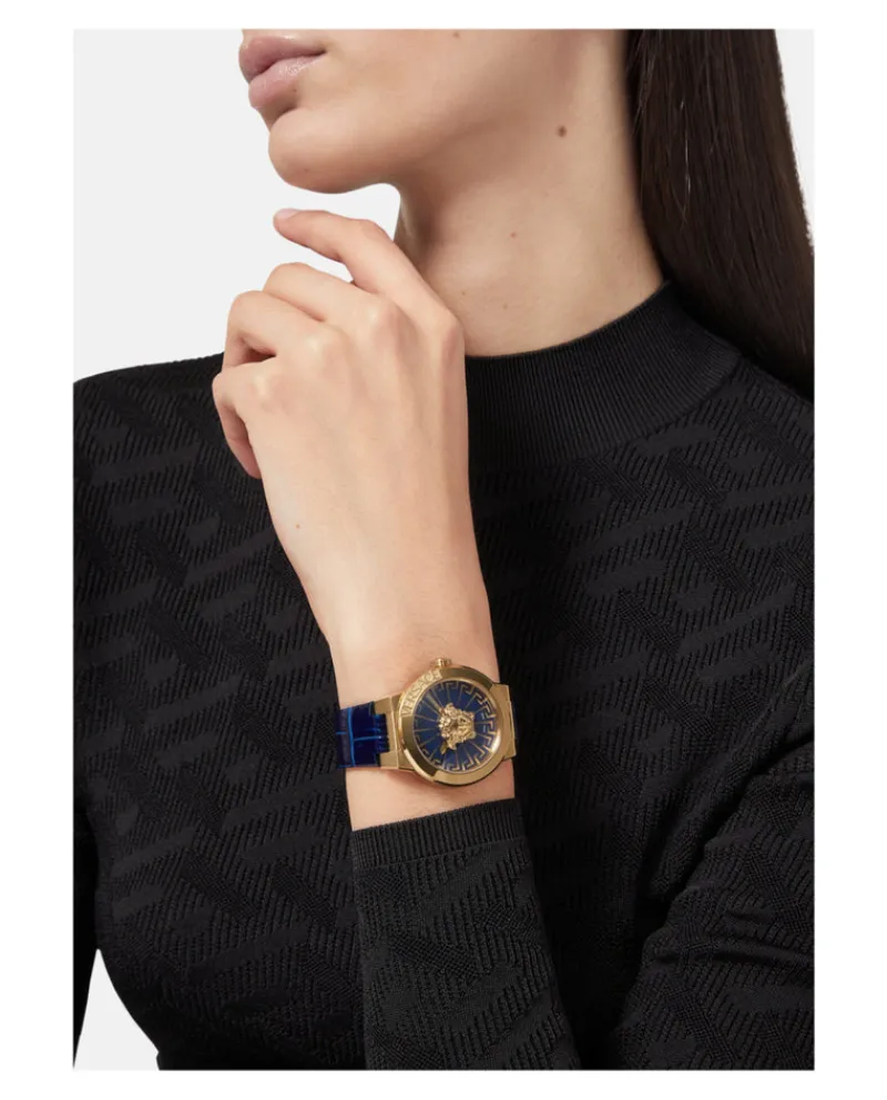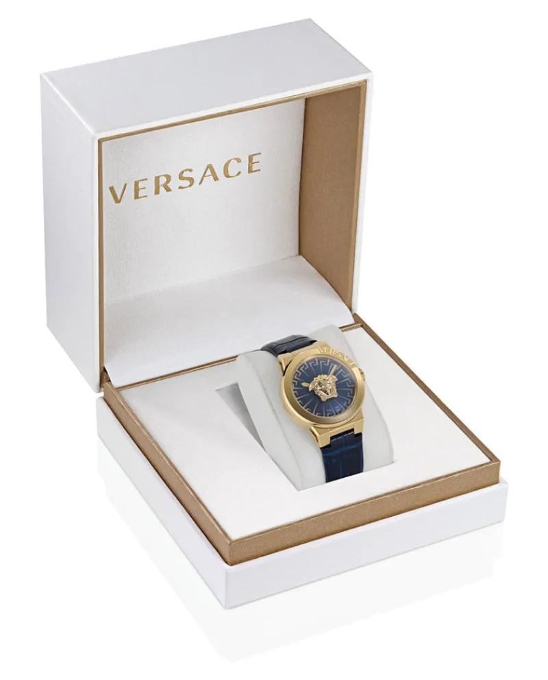 Fulfilled by our friends at Carro Luxury MaisonDETAILSSwiss Made 2 Hand Quartz Movement38mm IP Yellow Gold CaseBlue Calf…