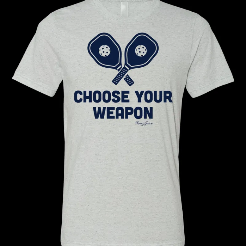 Gear up for your next match with the Pickleball Choose Your Weapon Unisex T-Shirt from SwingJuice. This tee is perfect for pickleball enthusiasts who love to play with style. Made from a premium triblend fabric, it ensures a soft, comfortable fit with virtually no shrinkage.