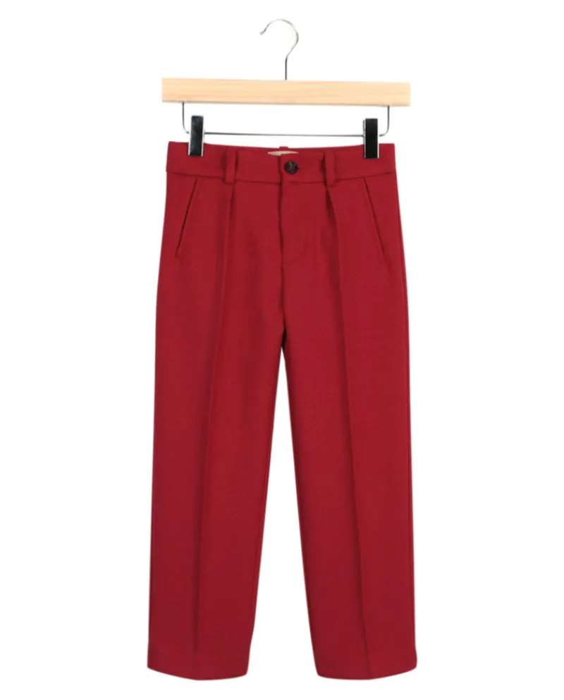 - Single pleated front detail; Two front welt pockets