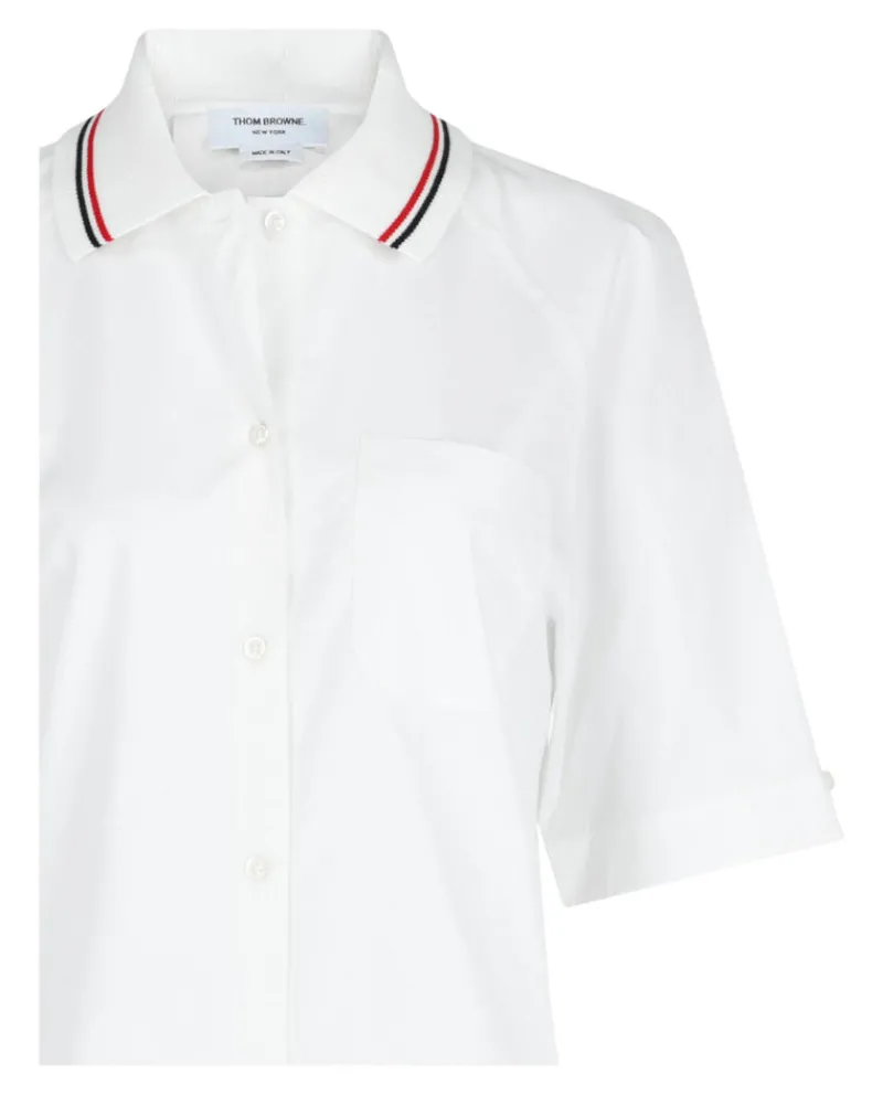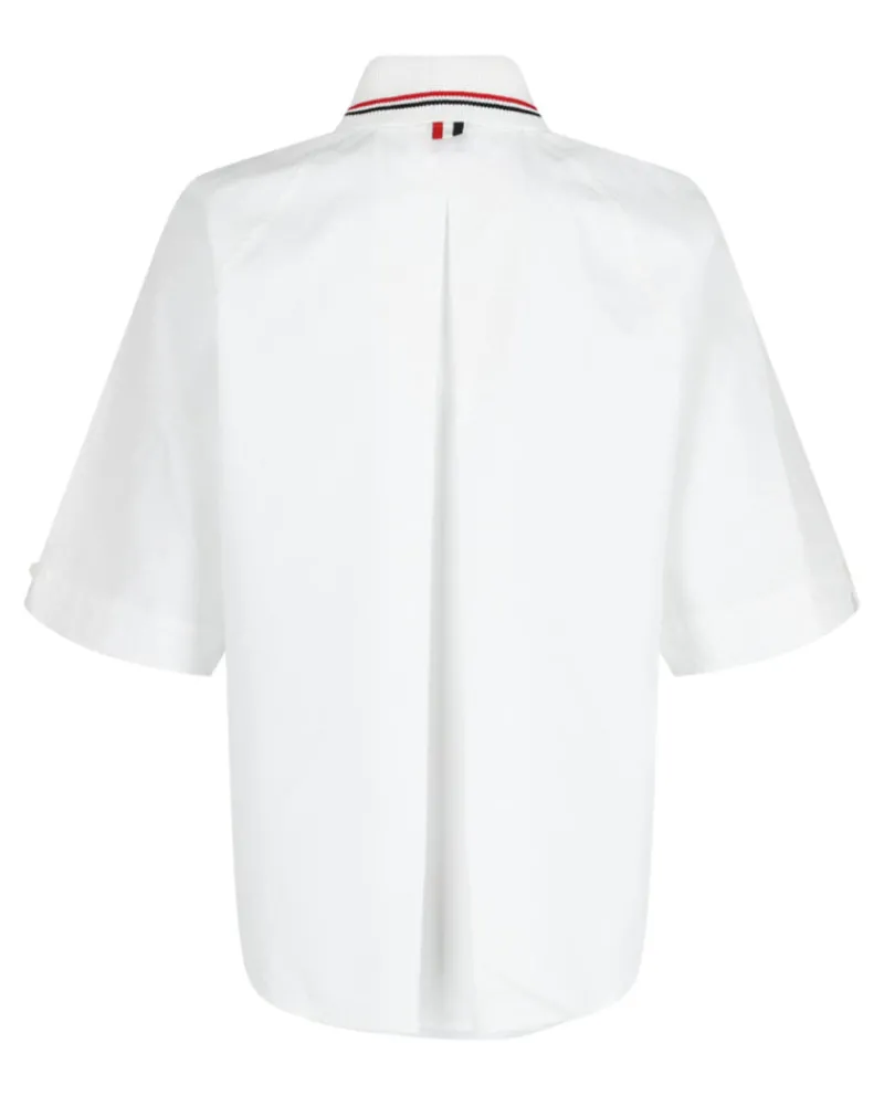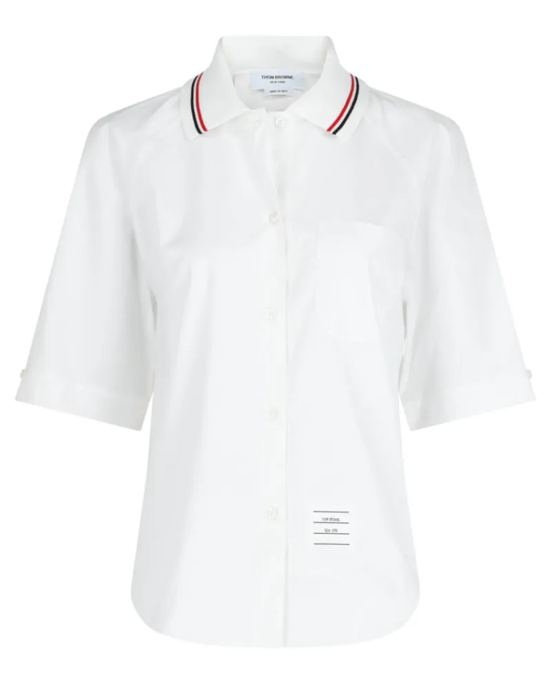 - Nametag applique; Pleated back yoke; Signature striped grosgrain loop tab; Chest patch pocket