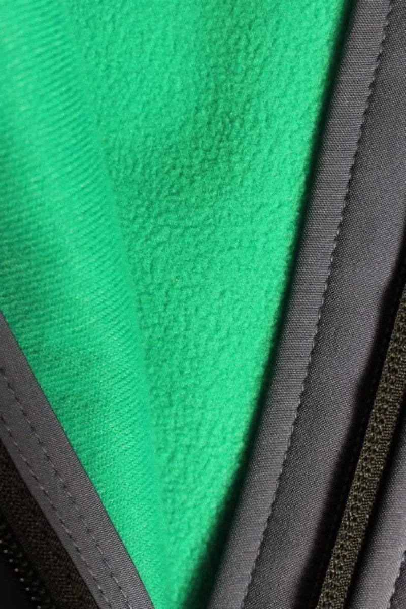 - DWR treated Softshell with Fleece Backing