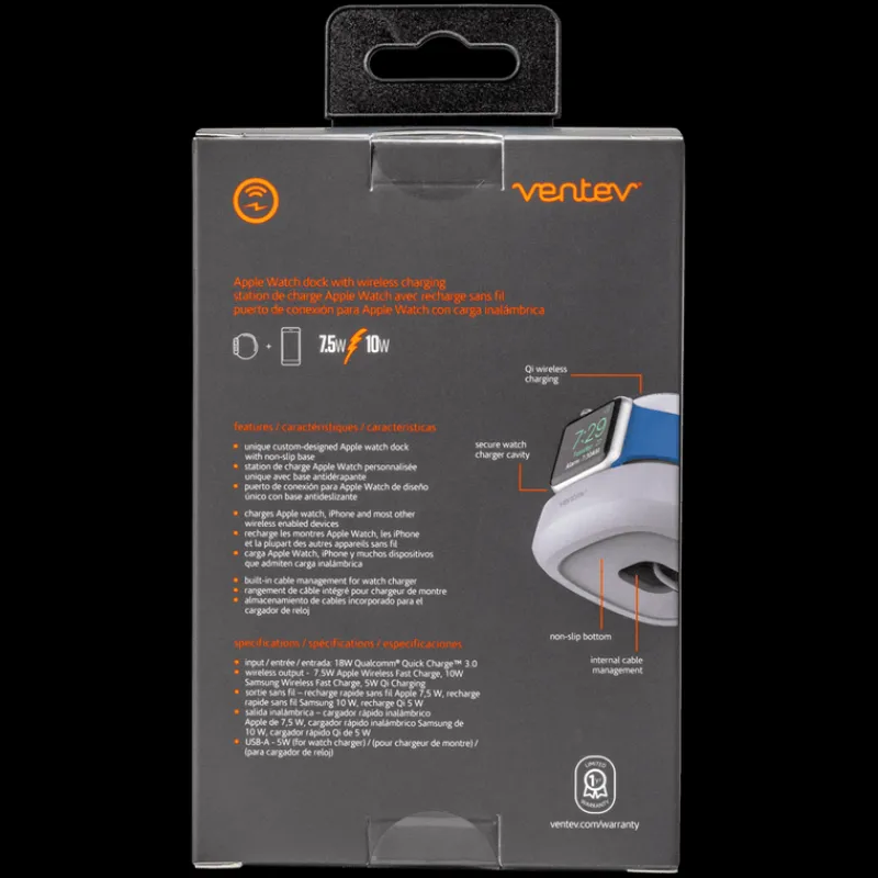 Power up both the Apple Watch and a wireless phone in the same place at the same time. The wireless watchdock duo creates a cradle to securely charges the Apple Watch with a quick connection of the Apple Watch charger. Plus, it charges a wireless-enabled smartphone up to 10W. This product also features a 5 ft charging cable and a Qualcomm Quick Charge 3.0 wall charger. 1-Year Limited Warranty.