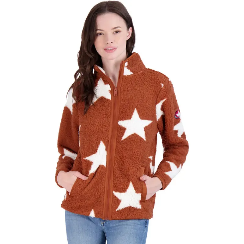 Stay cute and cozy all winter long wearing this women’s sherpa jacket.Product FeaturesFull zip closure with a stand coll…