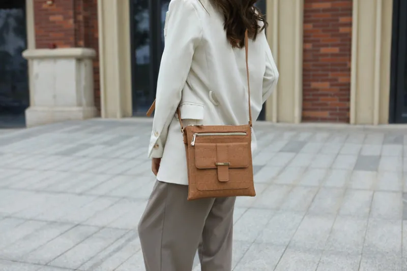 Exterior features a front zipper pocket and a spacious magnetic snap pocket