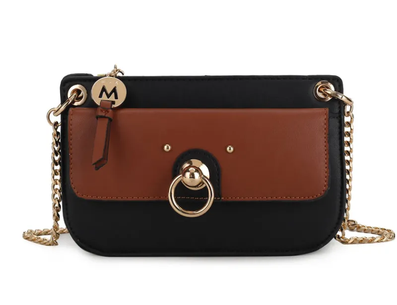 High-quality vegan leatherColor blockGold-tone hardwareMeasurements: 7.8” W x 5” H x 2” DCrossbody strap: 25”Int…