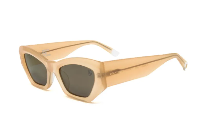 Featured in champagne yellow acetate frame with green TAC polarized lenses.