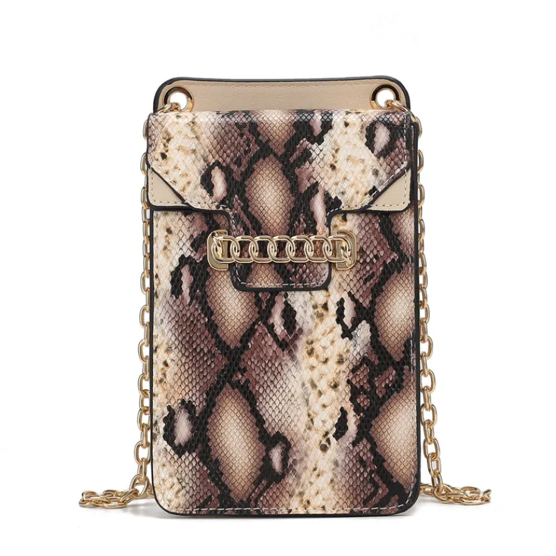 • High-quality vegan leather• Gold-tone hardware• Faux snake-embossed•Measurements: 4.72 in L x 7.5 in H x 2 in …